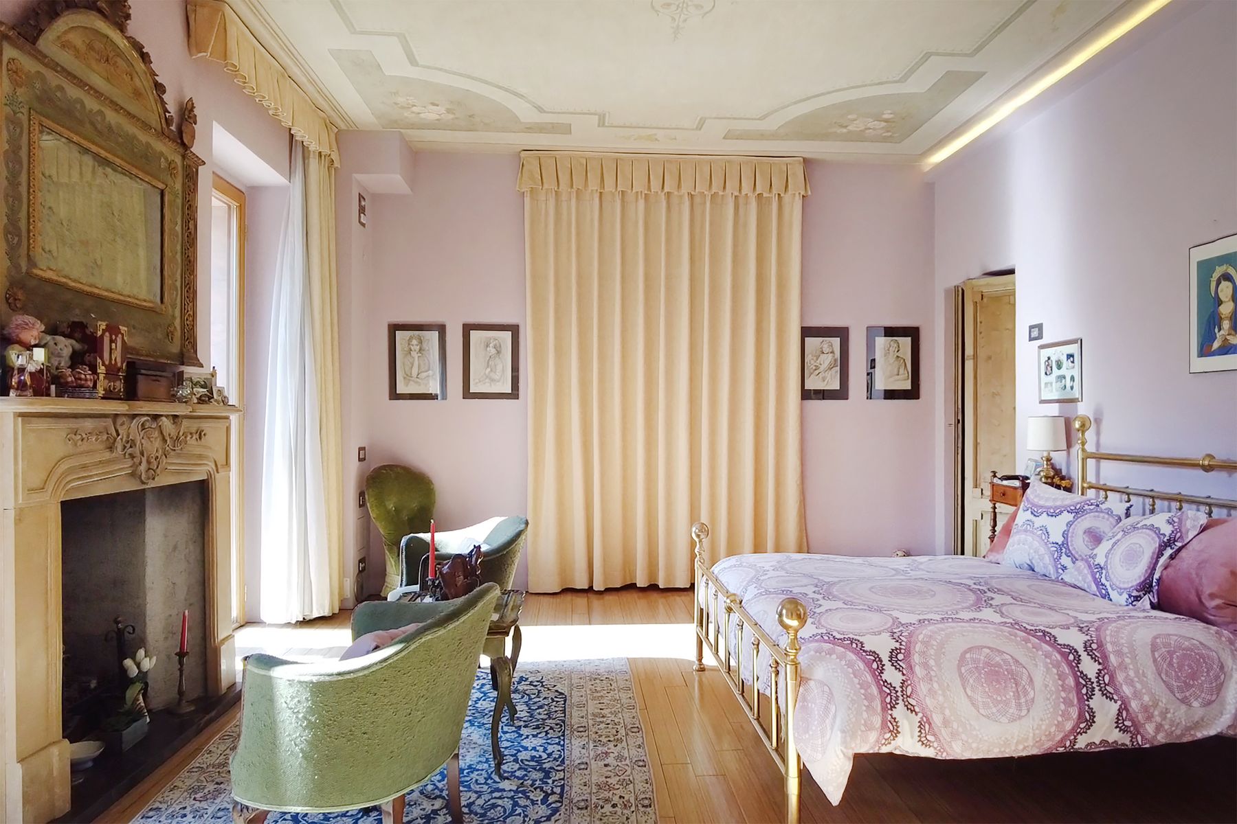 Master suite with extraordinary frescoed ceiling and en-suite master bathroom