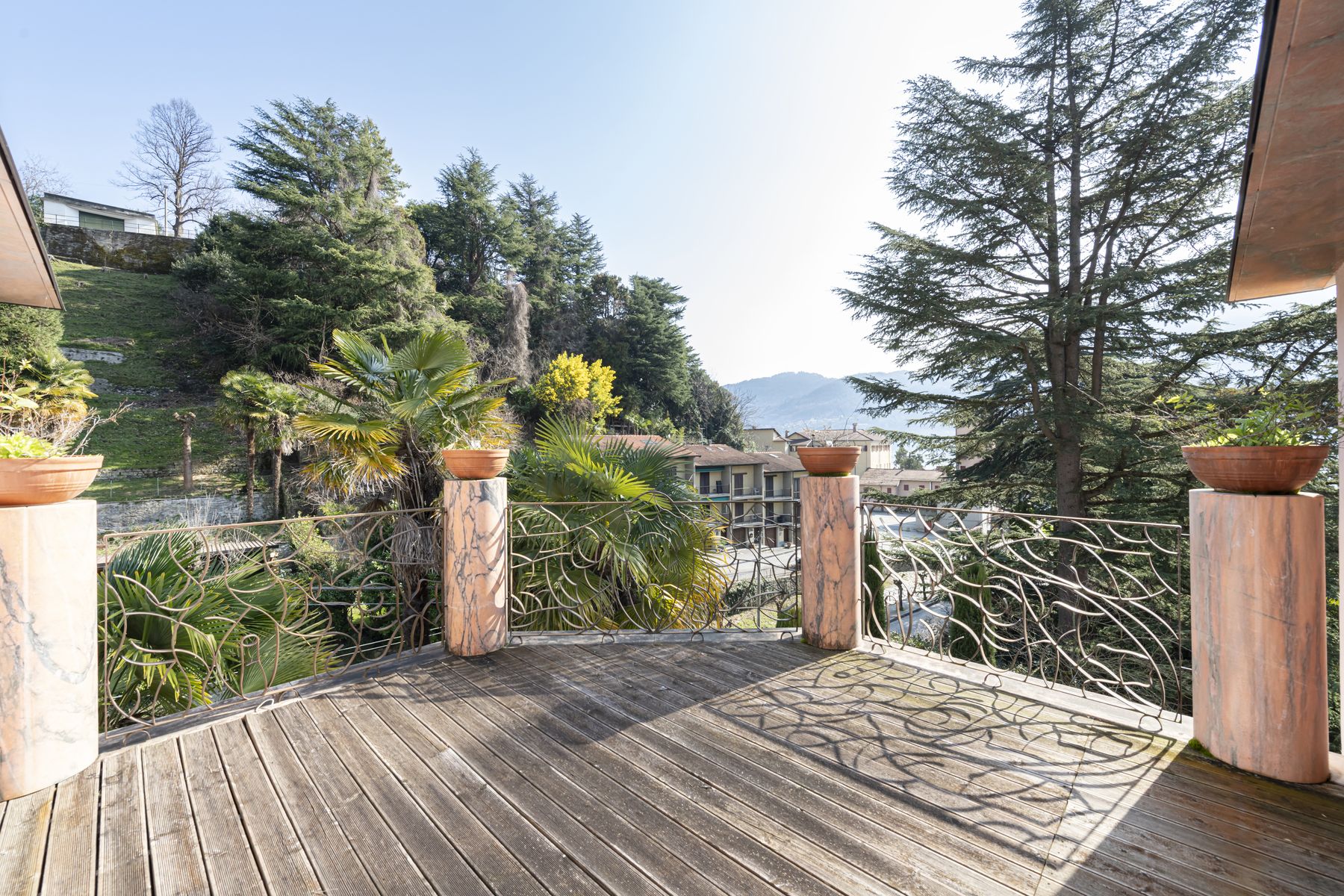 Two panoramic terraces (22 sqm and 12 sqm) offer charming views of the surrounding greenery and glimpses of the lake, ensuring complete privacy.