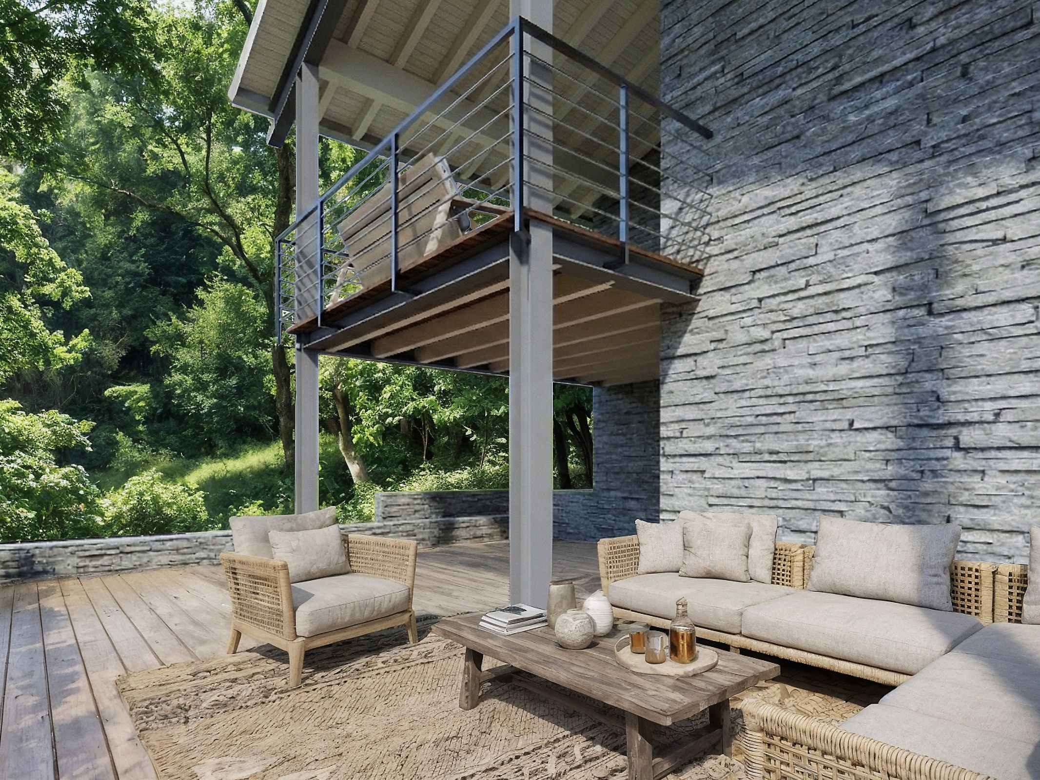 The first floor (94 sqm) with exposed laminated wood beams includes three double bedrooms, including a master bedroom with private bathroom and direct access to the 25 sqm covered terrace, a second bathroom and a laundry room.